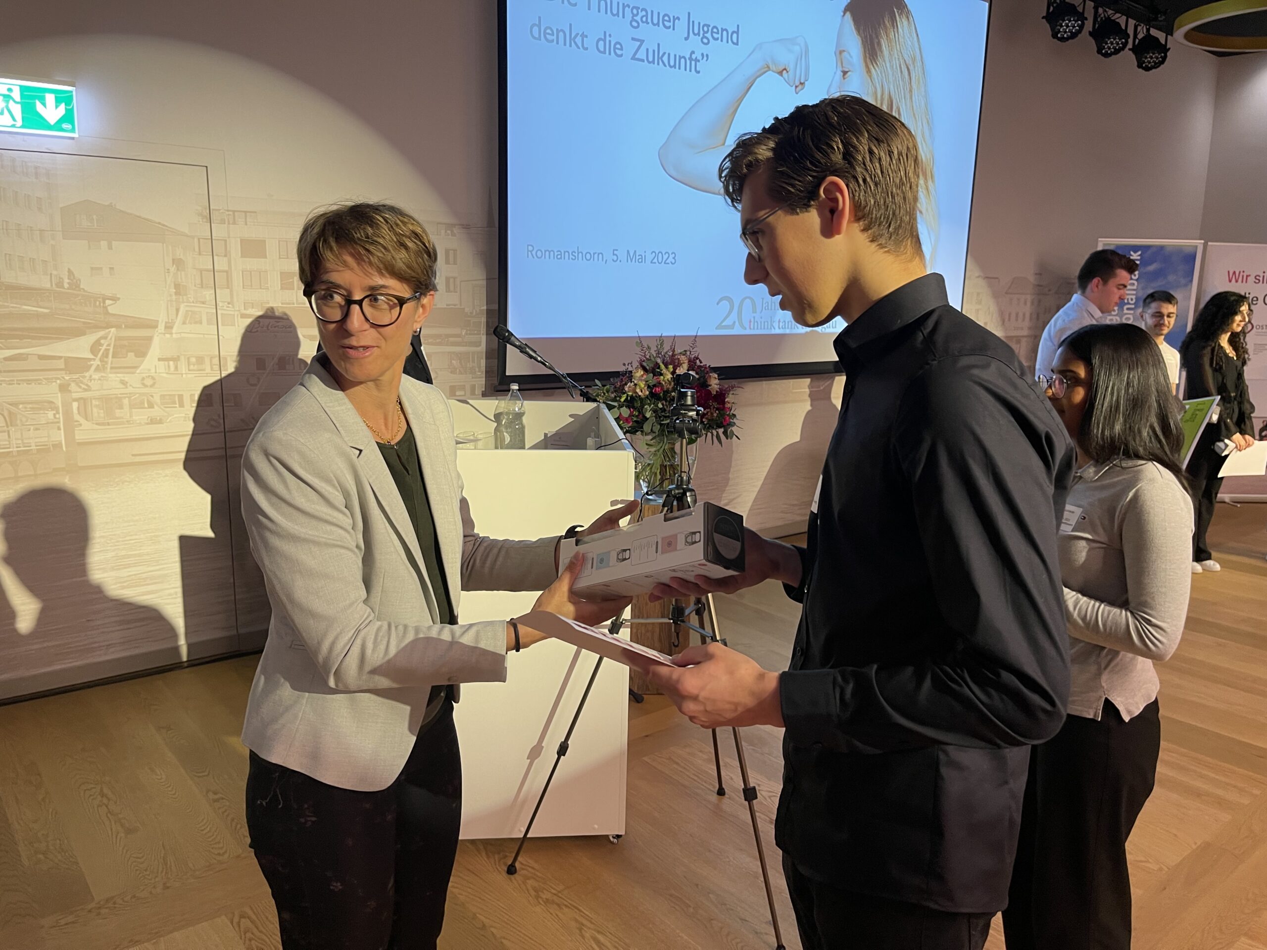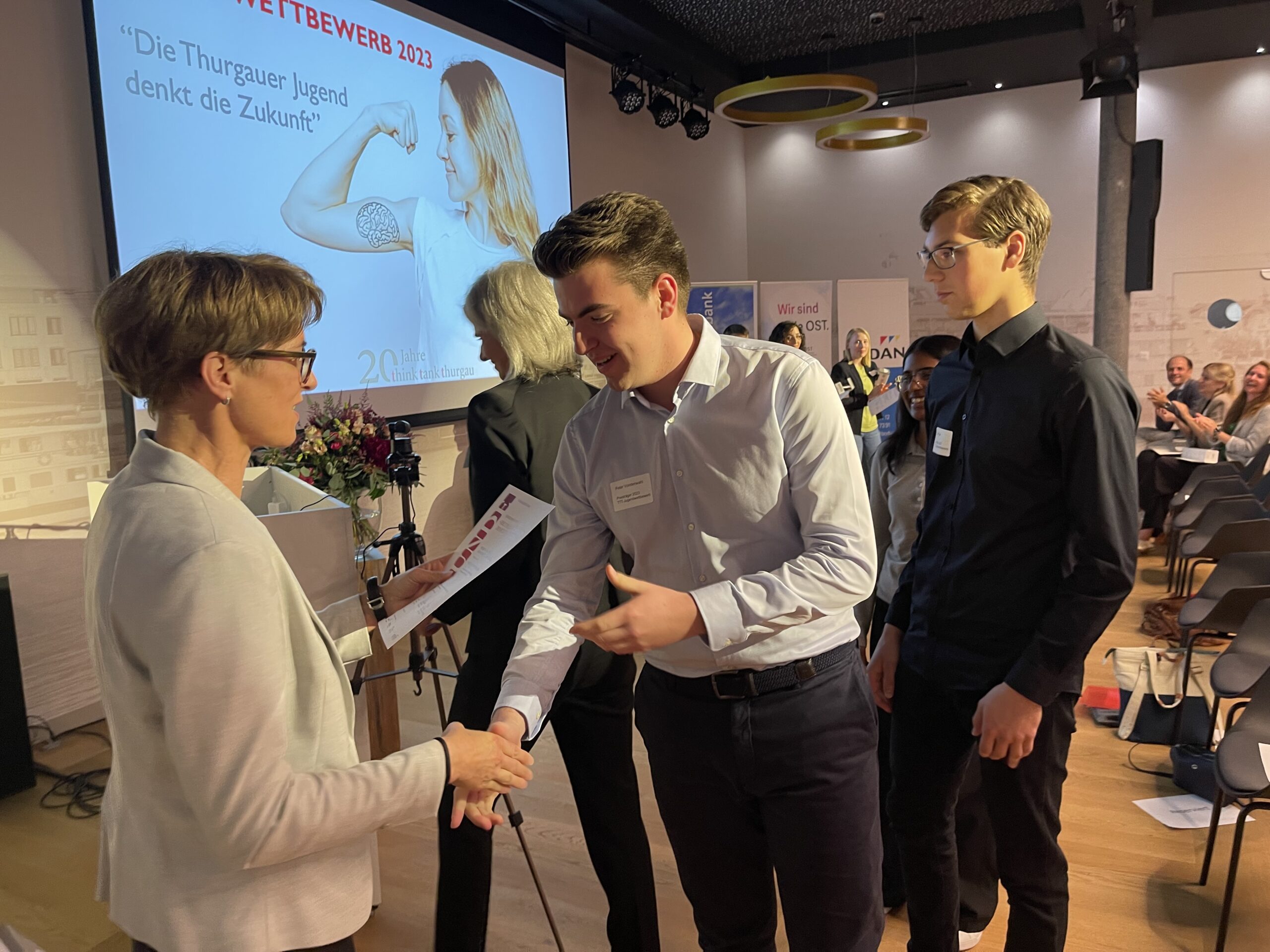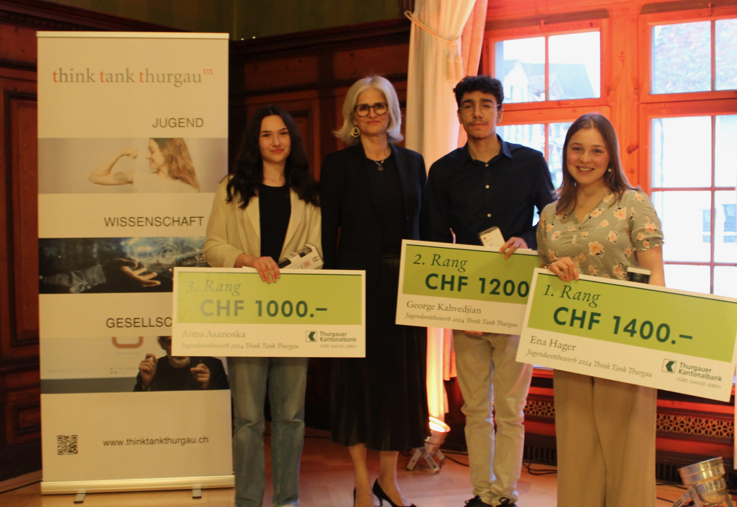 Die Stiftung Think Tank Thurgau lädt jedes Jahr Schülerinnen und Schüler der Kantonsschulen im Kanton Thurgau ein, am Jugendwettbewerb teilzunehmen. Mit dem Jugendwettbewerb prämiert die Stiftung Think Tank Thurgau zukunftsweisende, innovative Arbeiten, die gesellschaftlich, wirtschaftlich oder ökologisch relevant sind. Eingereicht werden können nur Arbeiten, die aus schulischer Perspektive von herausragender Qualität sind. Ob dies der Fall ist, entscheidet die betreuende Lehrperson. Eine Jury beurteilt die eingereichten Maturaarbeiten und zeichnet die Besten aus.