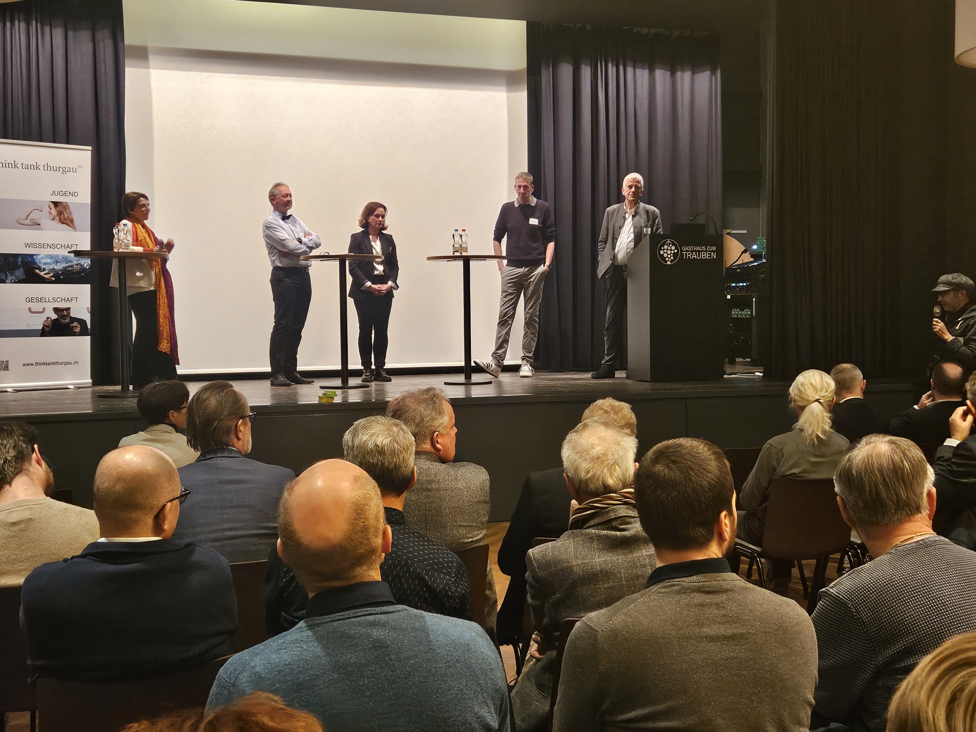 Künstliche Intelligenz tangiert fast alle beruflichen wie privaten Bereiche unseres Lebens. Das Forum des Think Tanks Thurgau befasste sich mit den Konsequenzen für Lernen und Bildung. Daniel Wessner, Leiter des Amts für Wirtschaft und Arbeit des Kanton Thurgau, brachte es gleich zu Beginn der Podiumsdiskussion auf den Punkt: «Bildung ist unser einziger Rohstoff. Es braucht daher Massnahmen und Rahmenbedingungen, damit alle Menschen im Umgang mit Künstlicher Intelligenz kompetent werden können.» Das Forum zeigte dabei: Angesichts der grossen Investitionen, die die Nachbarkantone St. Gallen und Zürich für Bildung im Zusammenhang mit Digitalisierung investieren, braucht es im Thurgau gemeinsame Anstrengungen, um nicht abgehängt zu werden.