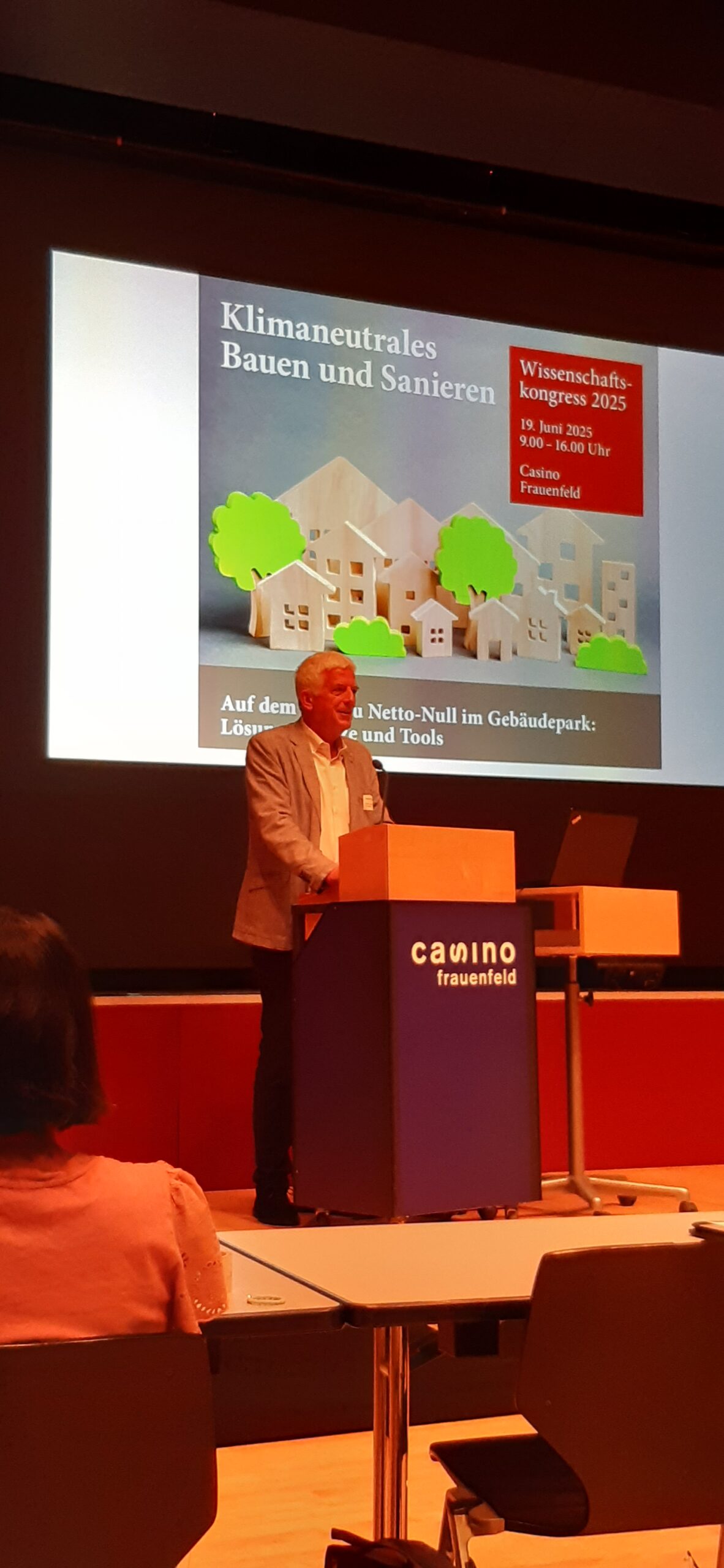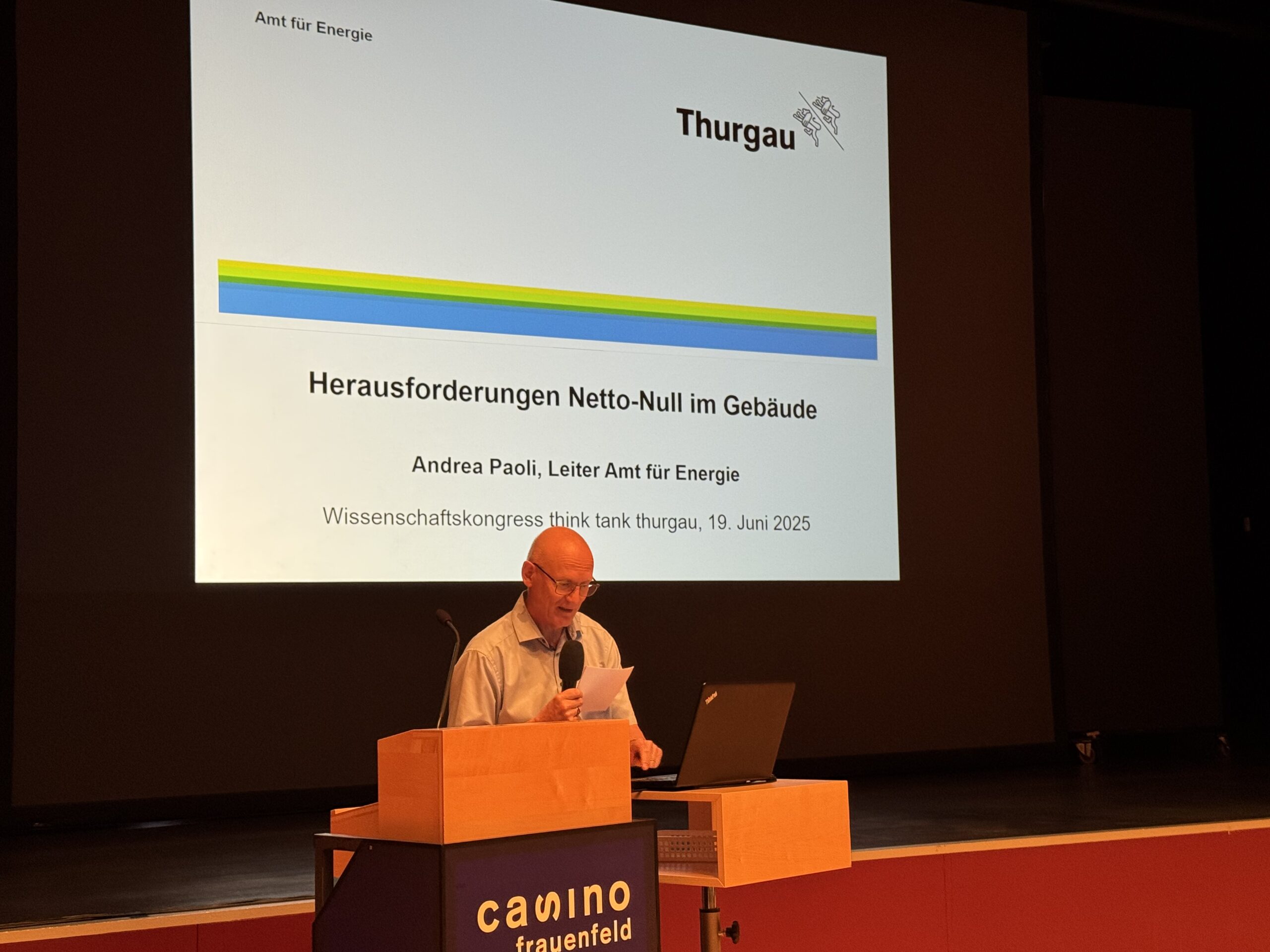 Die Stiftung Think Tank Thurgau hatte gemeinsam mit dem Wissenschaftspartner ZHAW am 19.06.2025 zum Wissenschaftskongress «Klimaneutrales Bauen und Sanieren» ins Casino Frauenfeld geladen. Vertreterinnen und Vertreter aus Wissenschaft, Architektur, Gebäude- & Energietechnik, Planung & Engineering sowie Wirtschaft und Politik diskutierten Herausforderungen und Lösungsansätze.